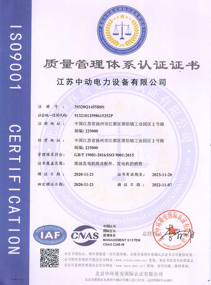 江蘇中動(dòng)電力設(shè)備有限公司創(chuàng)建于2012年,注冊(cè)資金2200萬(wàn)元,專(zhuān)業(yè)從事柴油發(fā)電機(jī)組生產(chǎn)、制造、銷(xiāo)售、售后、改裝、出租于一體的現(xiàn)代化企業(yè)。工廠(chǎng)地理位置在歷史文化名城江蘇揚(yáng)州古城東郊,江都區(qū)邵伯鎮(zhèn)工業(yè)園區(qū)。西鄰京滬高速,北鄰揚(yáng)粟高速,南鄰寧通高速、北有寧啟鐵路,東鄰揚(yáng)州泰州飛機(jī)場(chǎng)。交通便捷,風(fēng)景宜人。我公司擁有現(xiàn)代化標(biāo)準(zhǔn)廠(chǎng)房5300平米,辦公樓850平方,總占地面積10800平方米。擁有數(shù)十人的銷(xiāo)售運(yùn)營(yíng)團(tuán)隊(duì),本著“顧客至上,誠(chéng)信為本”的服務(wù)宗旨全天候、全心全意為顧客服務(wù)。2015年7月公司產(chǎn)品通過(guò)了ISO-14001環(huán)境體系認(rèn)證、ISO-18001職業(yè)健康體系認(rèn)證、ISO-9001質(zhì)量體系認(rèn)證。每年質(zhì)監(jiān)部門(mén)對(duì)我公司產(chǎn)品的抽檢全部合格···